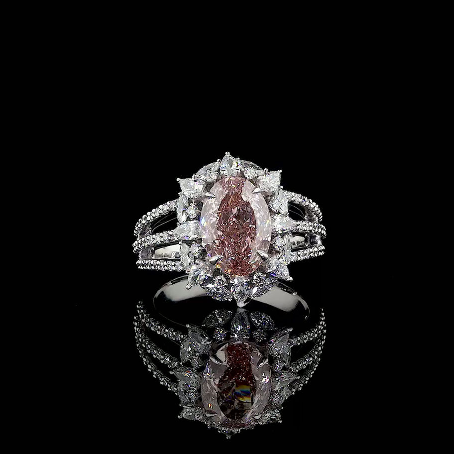 Pink Lab Diamond Cluster(Pavé) Ring(LC1-9)